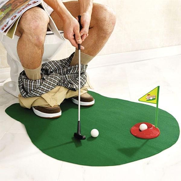 - Potty Putter Toilet Golf Game lets you practice your putting while perching on the pot!