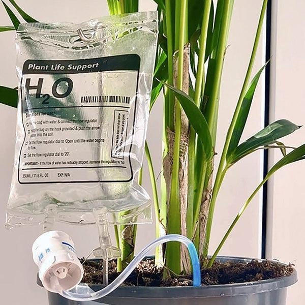 - IV Drip Plant Waterer will drip-feed your plant and keep them alive when you're?traveling!