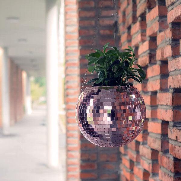 - Unconventional Disco Ball Hanging Flower Pot with mirror surfaces that reflect light!