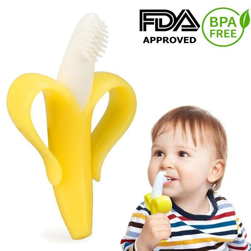 As early as a few months, babies' gums are massaged to help stimulate the growth of teeth. Once milk teeth show up, parents care for it until their toddler years. Give your child this adorable banana toothbrush that fits his little hand with soft bristles that's gentle on his teeth and gums.