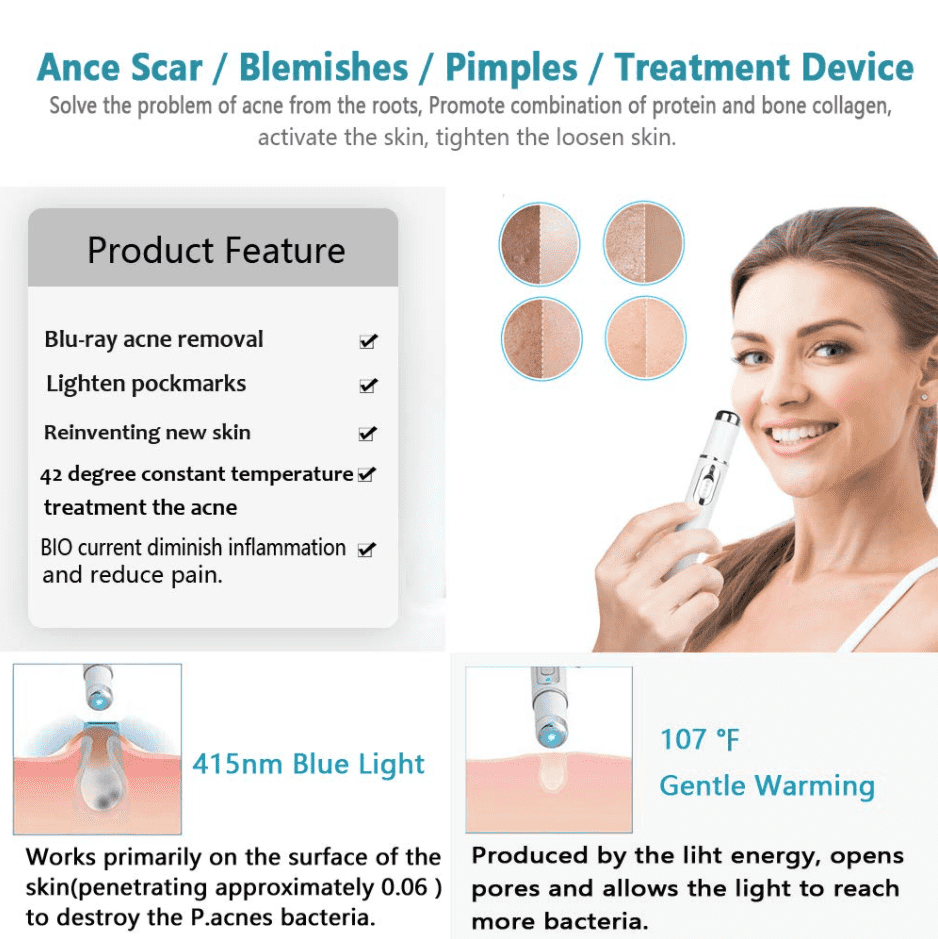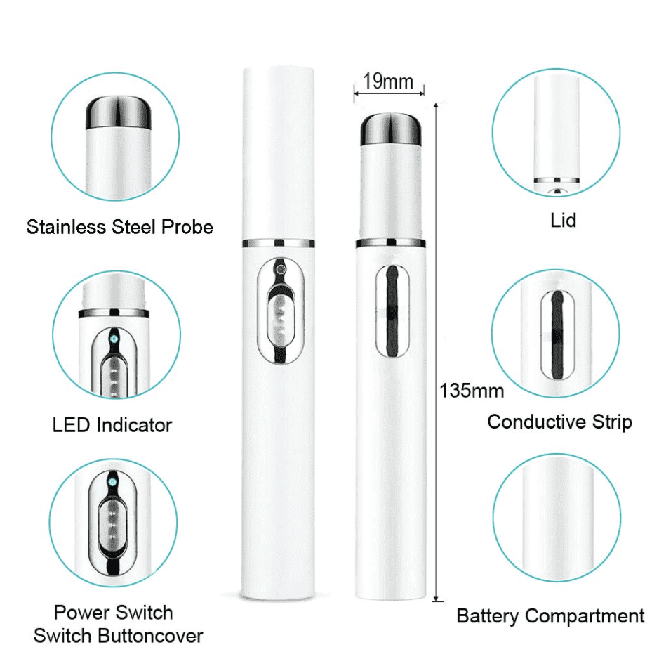 Promote acceptable acne skin evaporation,?And It can solve the problem of acne from the roots,?Also keep the skin clean, You can use it directly on your skin and it would only be warm, This pen will never be hot.
