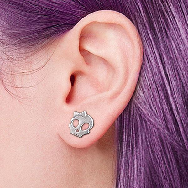 - A sweet ribbon bow sits atop a skeletal head with these 925 Sterling Silver earrings.