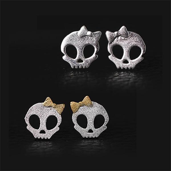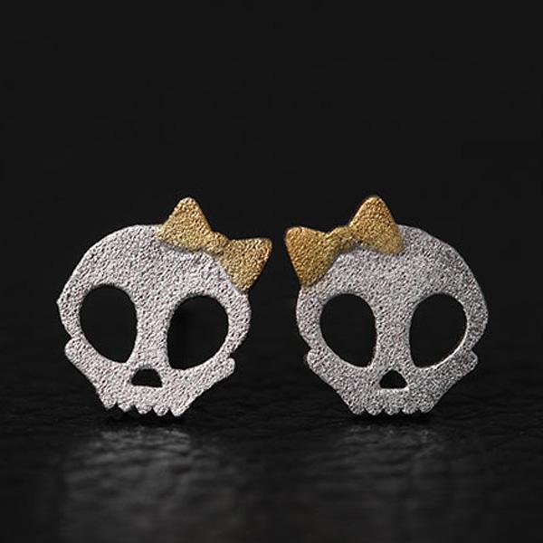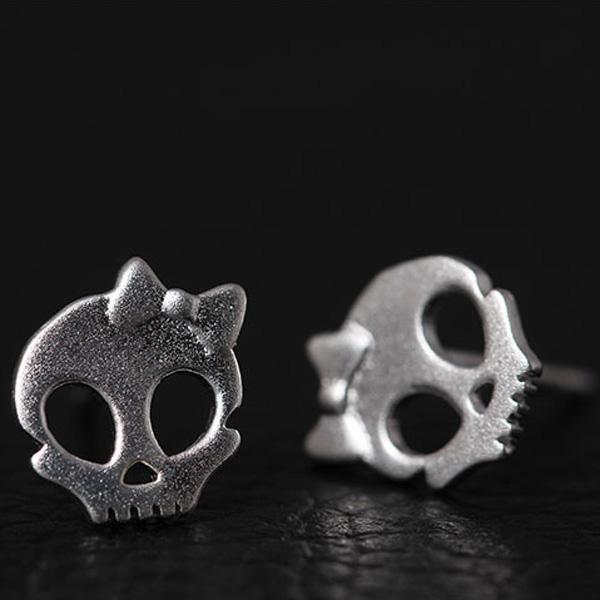 Bring out the goth in you by wearing the 925 Sterling Silver?Bow Skull Earrings which rests delicately on your ear and?screams badass to?all?who look at?it! A poignant reminder of death and sweetness rolled into one mysterious package.