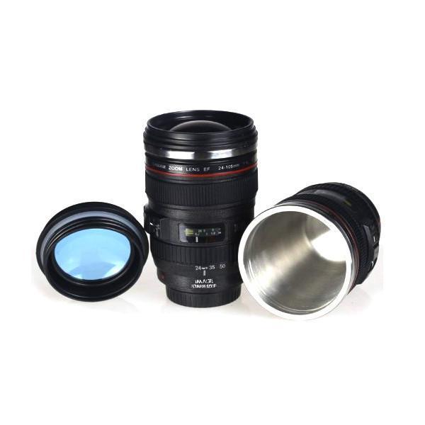 - DSLR Camera Lens Stainless Steel Mug looks just like a DSLR camera lens and comes with a screw-top clear lens lid!