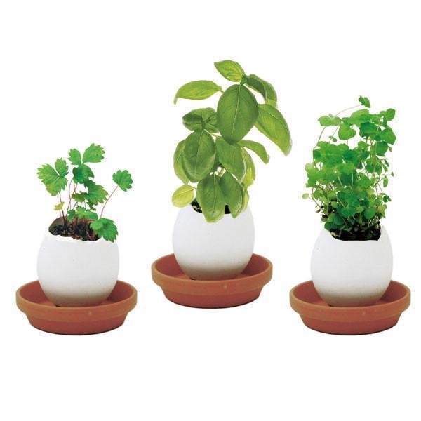 - Set of 3 egg planters with Mint, Strawberry and Basil seeds!