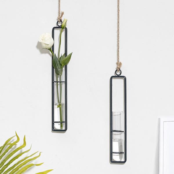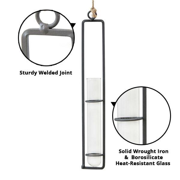 Hanging Glass Tube Plant Terrarium with Iron Frame