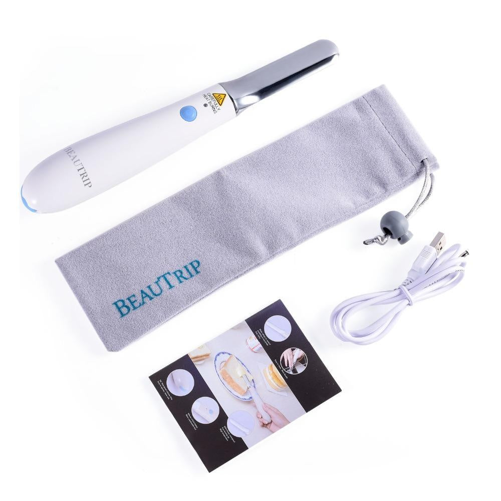 CHARGER CABLE: The extremely powerful, 3.7 V / 2600 mAh, UL safety rechargeable lithium ion battery can last for up to 10 days if you use your heating knife for 20 minutes on a daily bases. A full charge will take about 3 hours(DC 5V 1A). The indicative lamp turn go red and keeps flicker, it means the product is almost out of batteries in 30 mins to 1 hour, recharge it please.