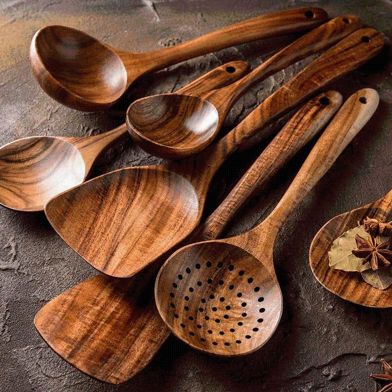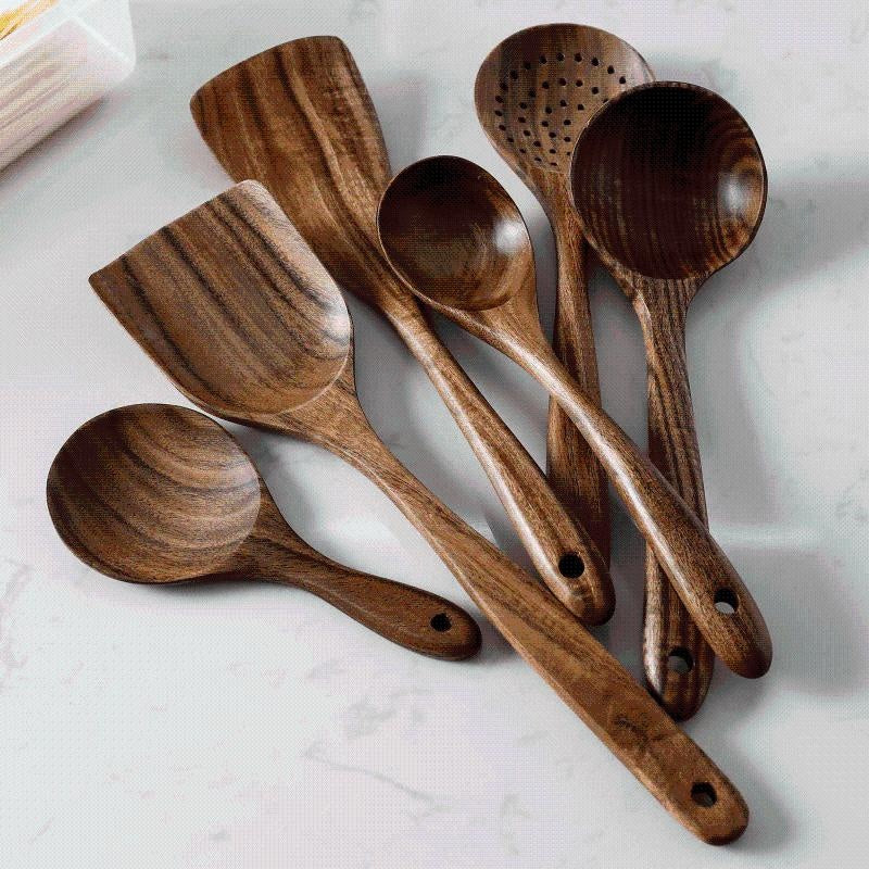 This durable teak wooden spoons can prevent these kitchen tools from scratching and damaging expensive non-stick pots and pans.Top-quality, Premium earth-friendly.Every kitchen needs one wooden spoon sets for cooking.