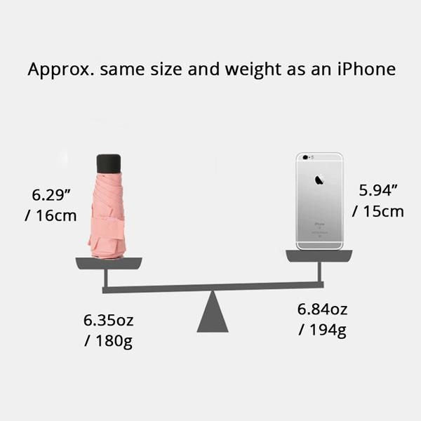 - Pocket Mini Palm-Sized Umbrella weighs the same as?your iPhone and fits right in your palm!