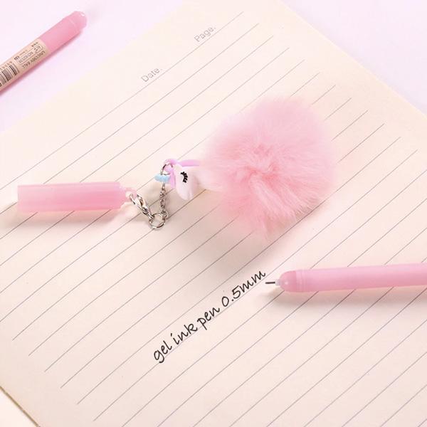 - Pink?Pom Pom Unicorn Pen with a detachable fluffy?plush ball?that could be taken off and used as a keychain or handphone accessory.