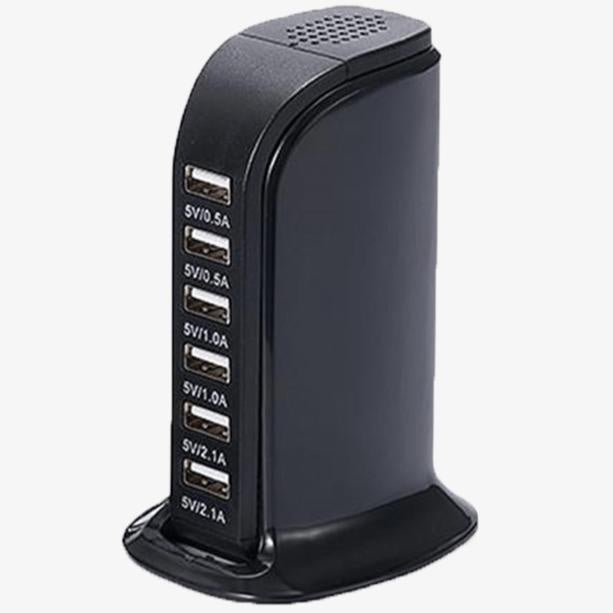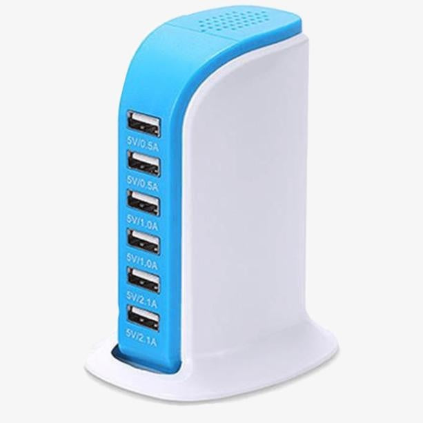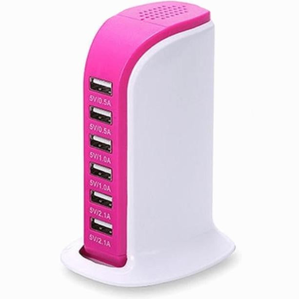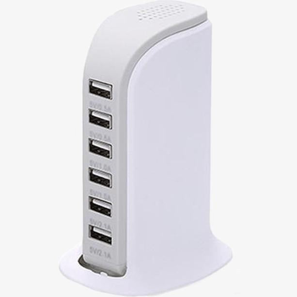 Charge all your devices from a single outlet with our Free Ship Deals 6-port charging station! Our USB charger delivers an optimized charge to all of your devices simultaneously. Save space on the wall, and deliver power to your whole family or mobile workstation from a single outlet. The sleek, modern tower design fits neatly into any desktop, conference room, home and office. The compact design makes the charger the perfect mobile accessory for storing in your carry-on luggage.