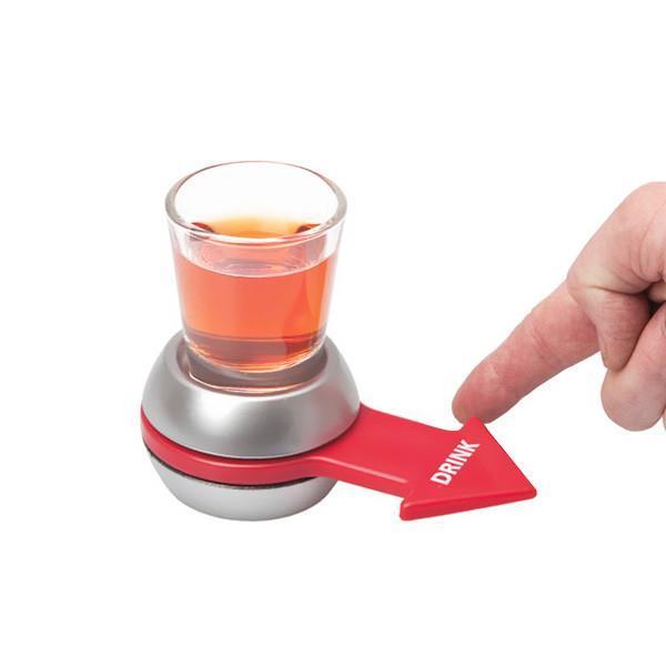 Break the ice with Spin The Shot Game! A drinking game that couldn't be more simple. Just place the shot glass on top of the spinner, pour your favorite drink?and spin away. If the arrow lands on you...bottoms up!?