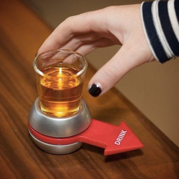 - Pour the drink into the shot glass (included) then spin the wheel, whomever gets pointed at?drinks!