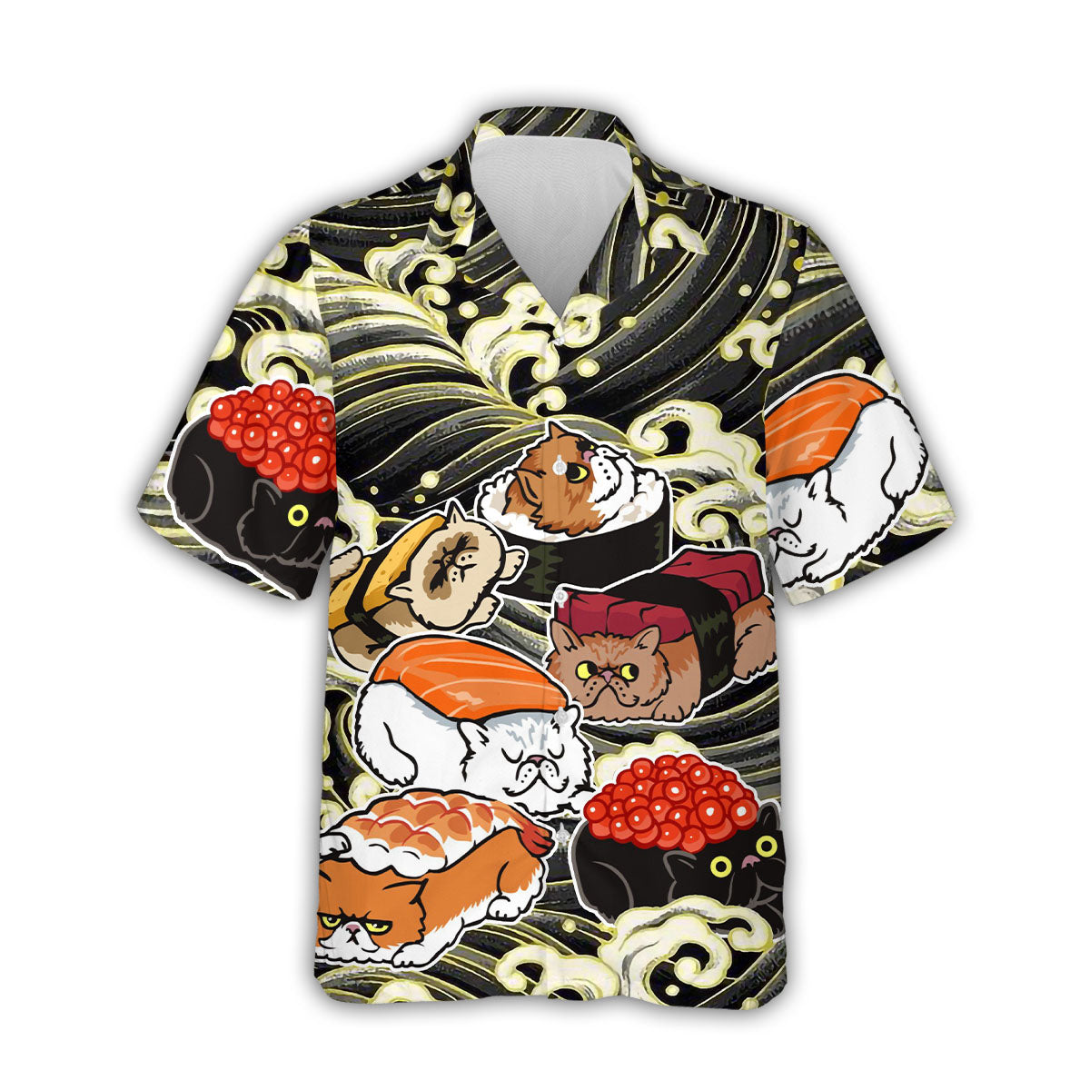 Angry Cute Japanese Cat And Sushi Hawaiian Shirt