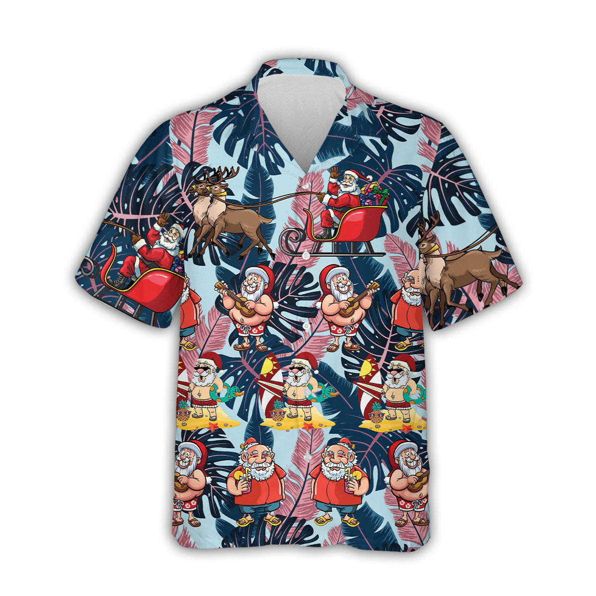 Tropical Palm Leaf Funny Santa Claus Hawaiian Shirt For Men Christmas