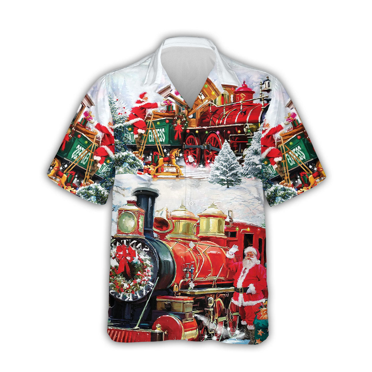 Snow Train Santa Claus Christmas Hawaiian Shirt For Men