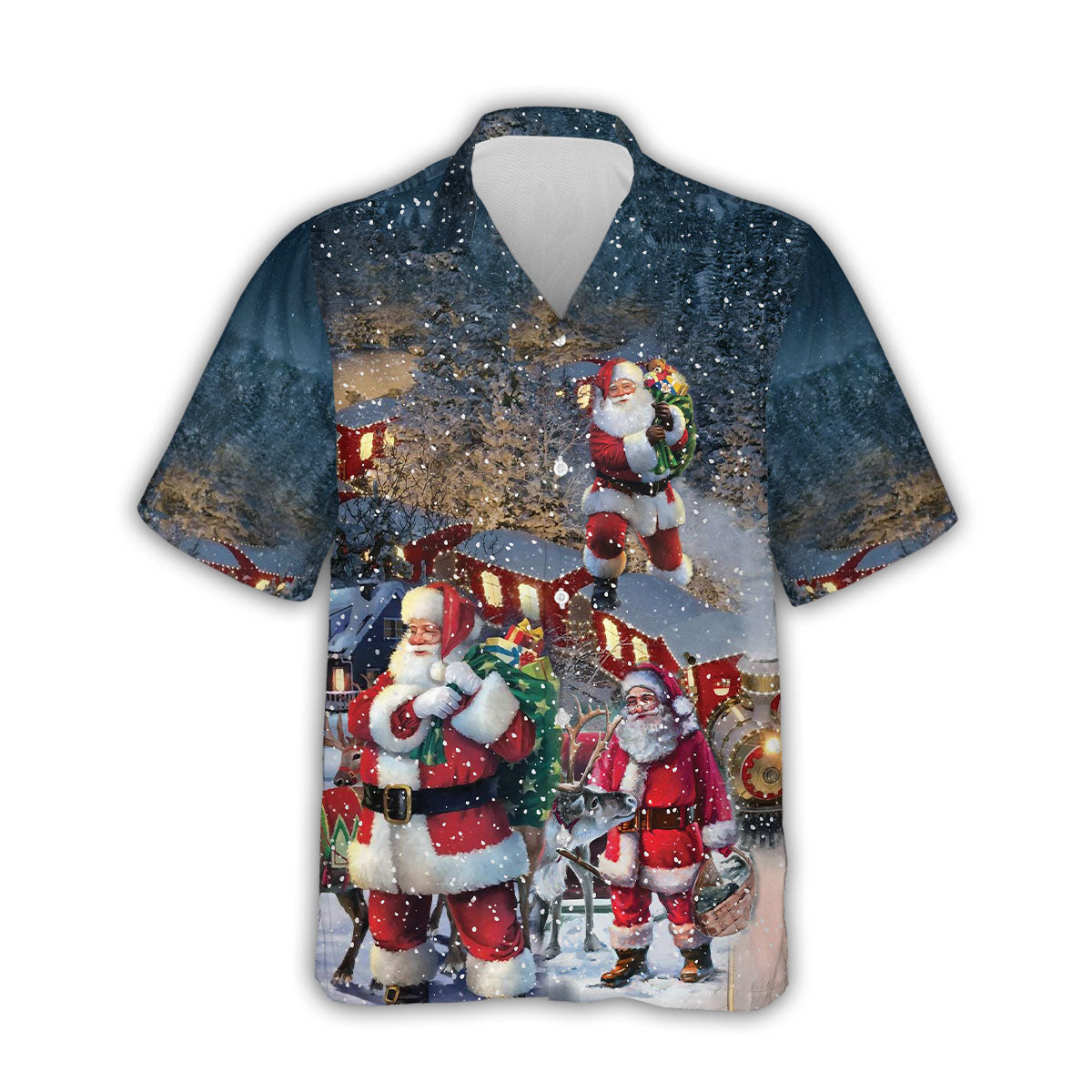 Christmas Santa Claus In Snow 3D Print Hawaiian Shirt For Men Xmas Party Unisex