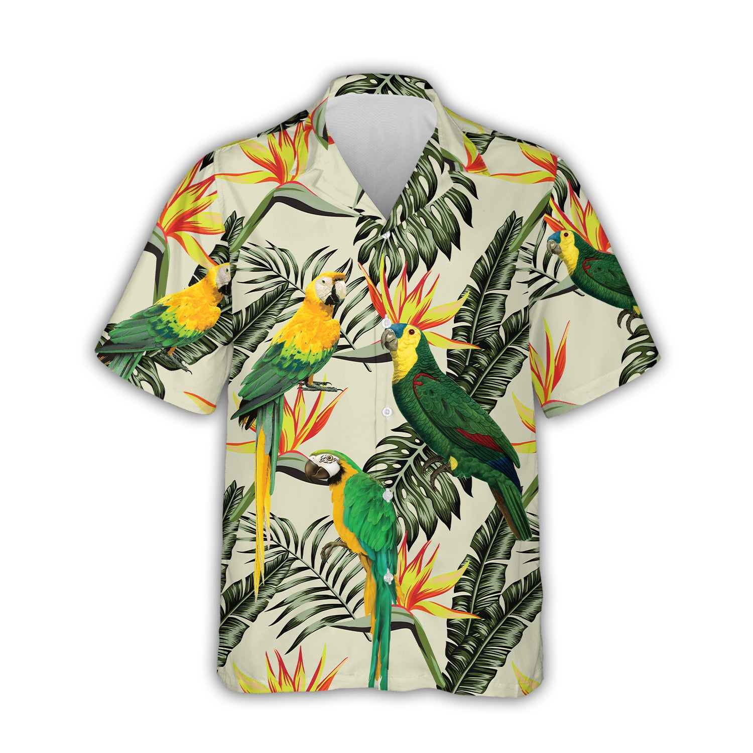 Parrot Hawaiian Shirts Tropical Palm Leaf Summer Parrot Lover Gift