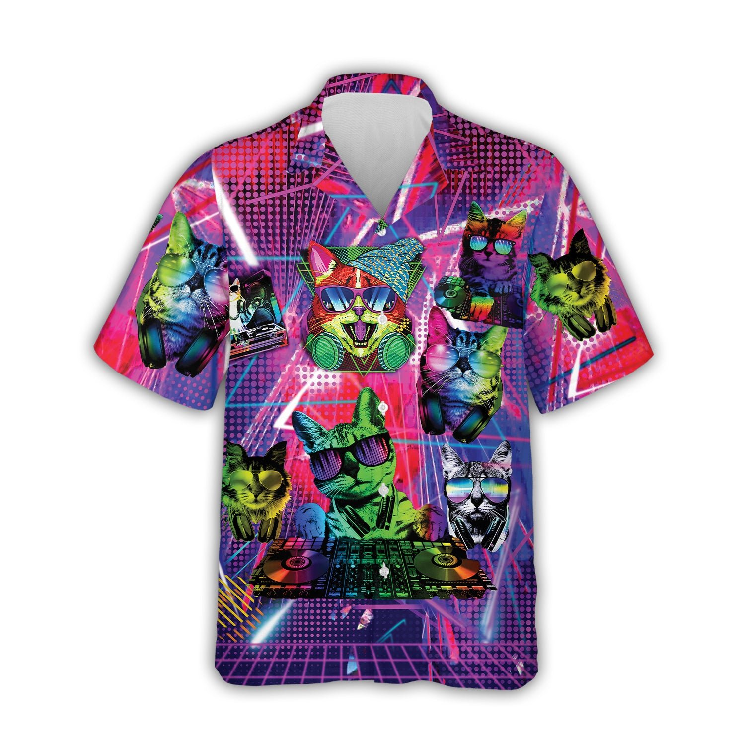 Neon Music DJ Cat Hawaiian Shirt, Summer Party DJ Cat Shirt Gift