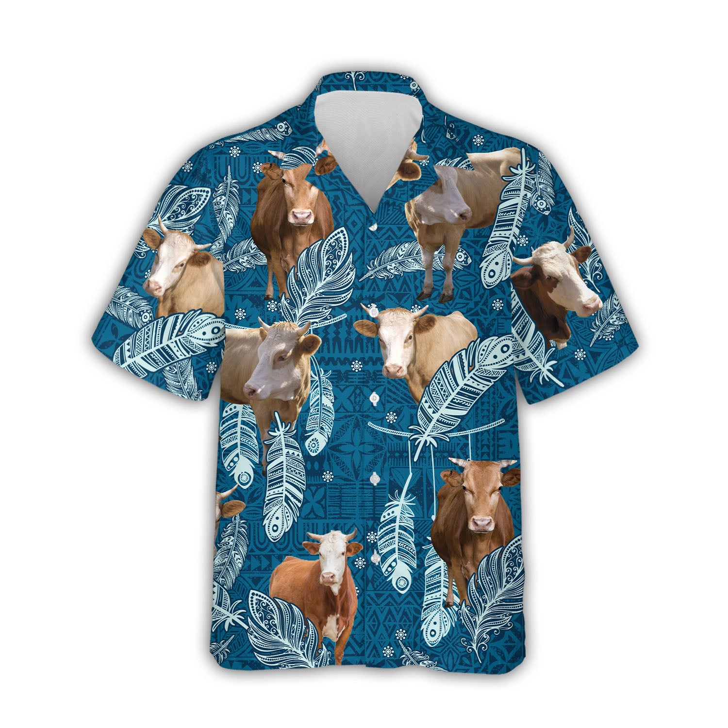 Tropical Boho Leaf Cow Hawaiian Shirt Cattle Cow Summer Vacation Gift