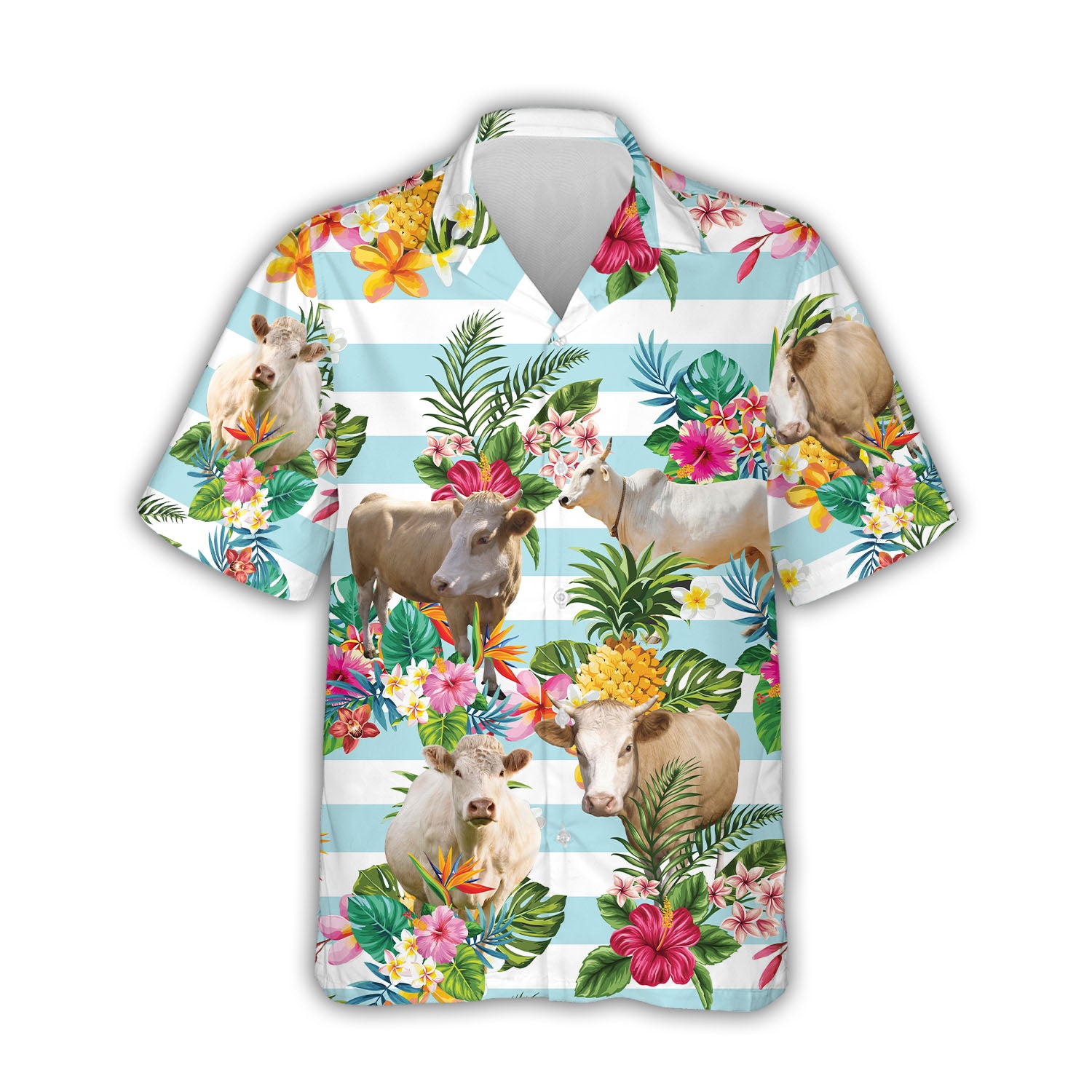 Cute Ongole Cattle Cow With Flower Hawaiian Shirts, Ongole Lover Cattle Floral Aloha Shirt Gifts