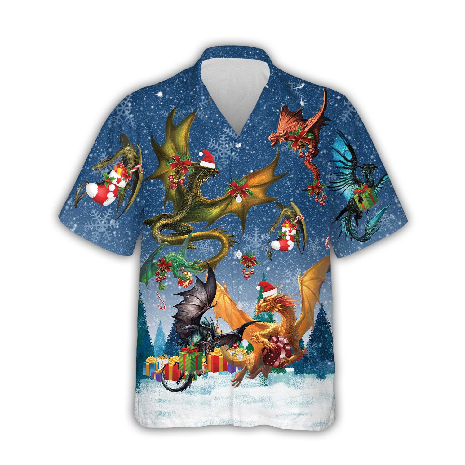 Funny Christmas Dragon Dinosaur Hawaiian Shirts, Xmas Aloha Shirt Dragon Lover Gifts