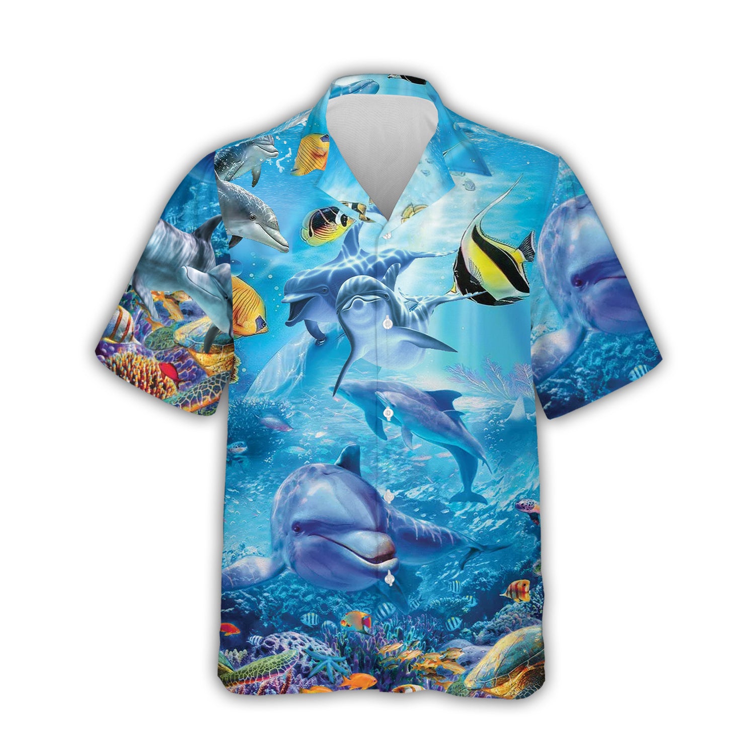 Dolphin Lover Deep in Ocean Hawaiian Shirts, Summer Deep Ocean Lovers Aloha Shirt Gift