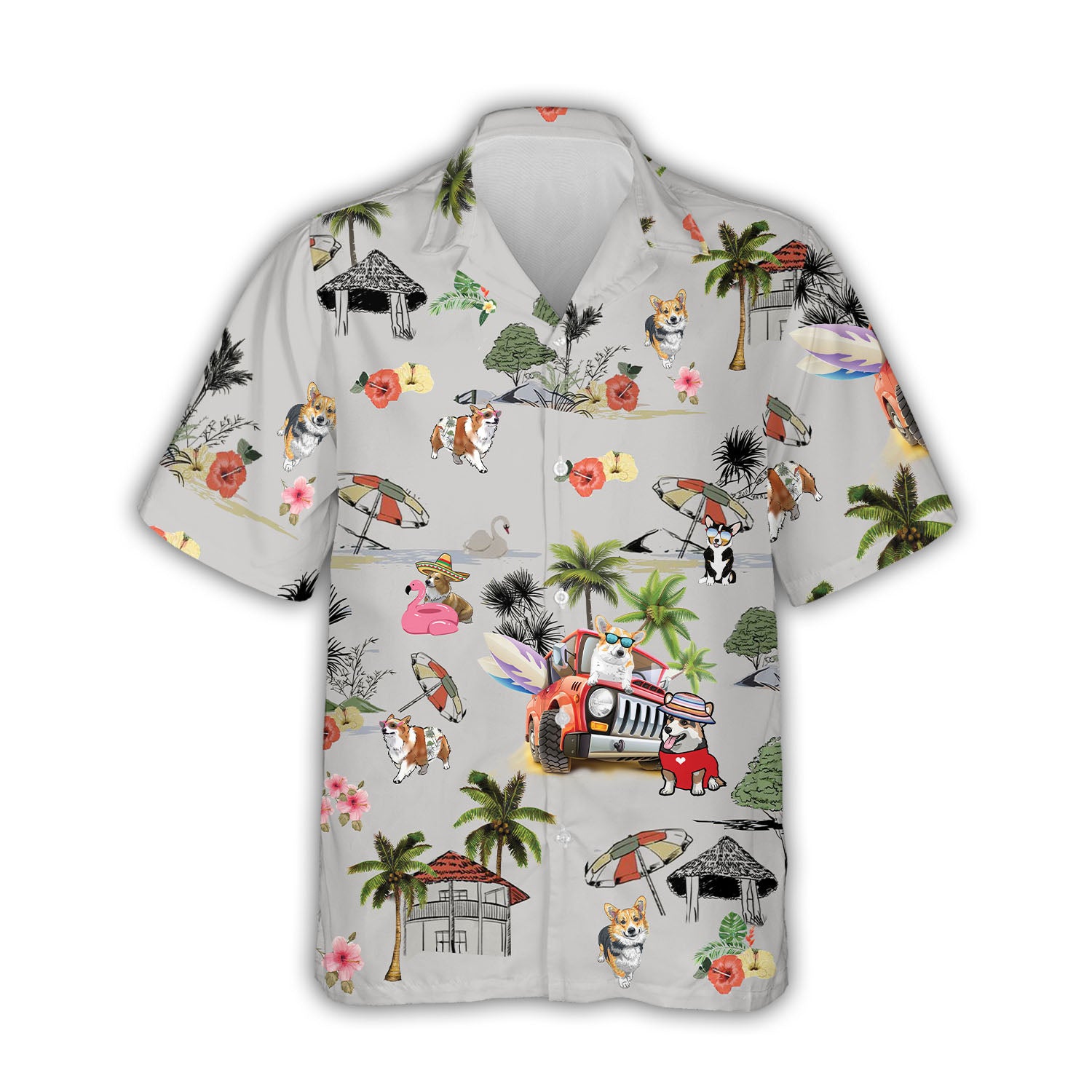 Cute Corgi Palm Tree Summer Hawaiian Shirts, Funny Corgi Dog Lover Gift