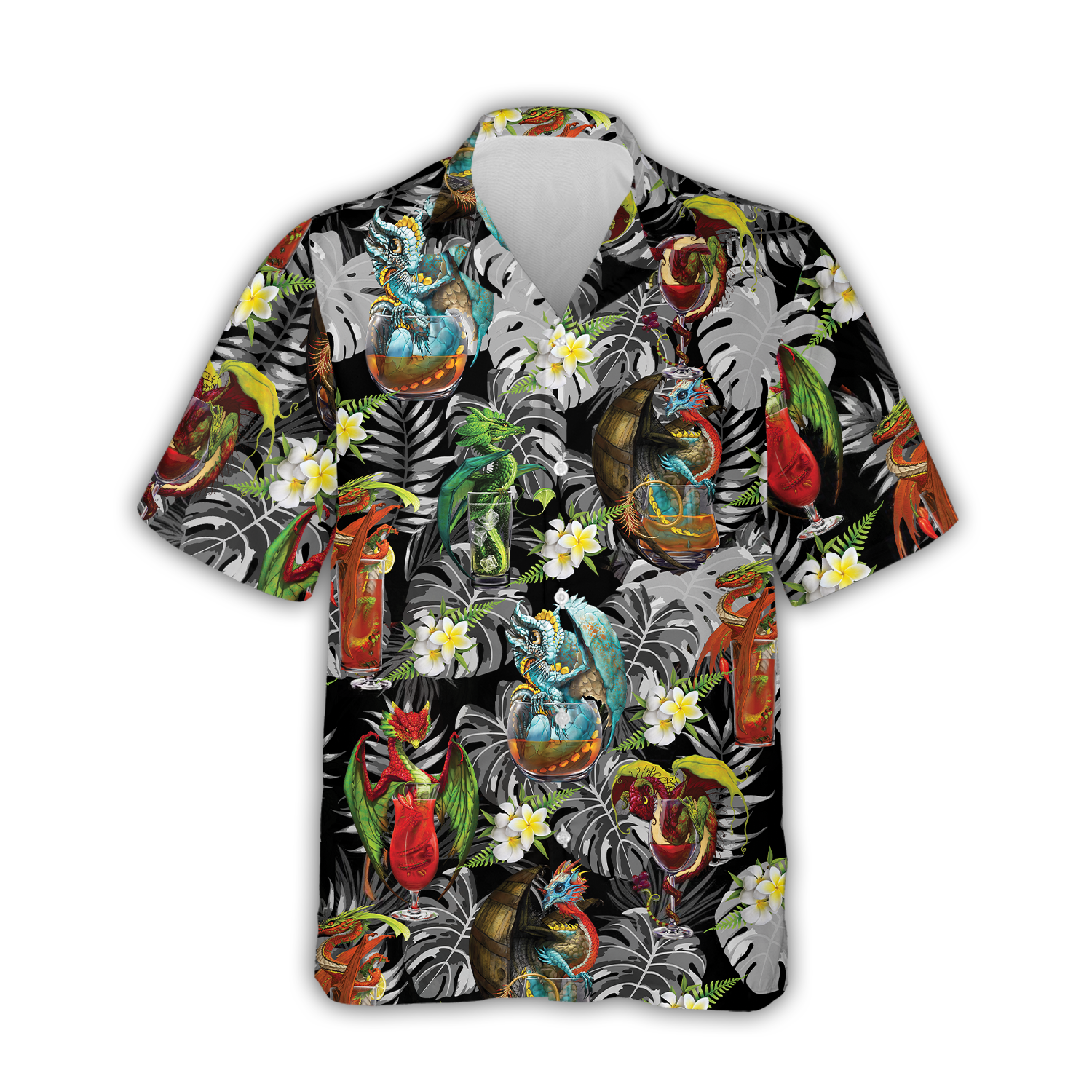 Tropical Dragon And Wine Summer Party Hawaiian Shirt, Funny Dragon Lover Gift Aloha Shirt