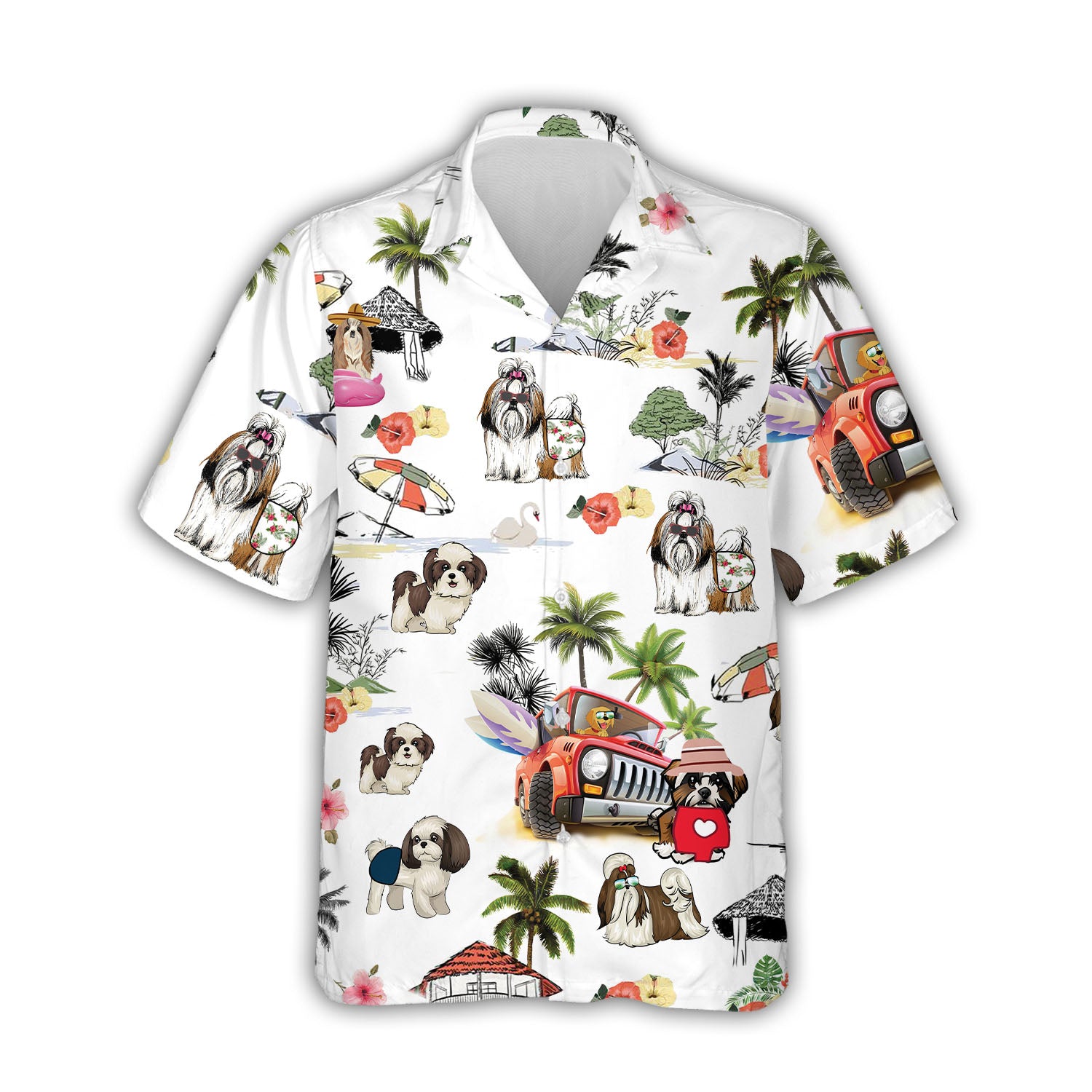 Funny Cute Shih Tzu Dog Summer 3D Printed Hawaiian Shirts