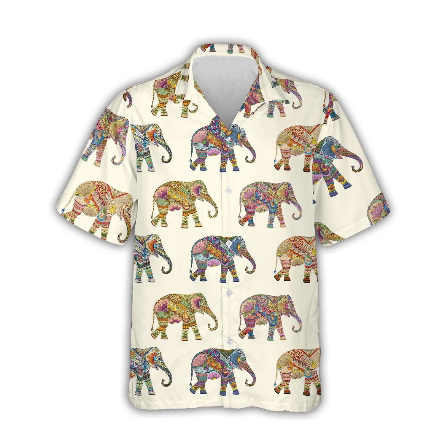 Vintage Brocade Elephant Summer 3D Print Beach Hawaiian Shirt, Elephant Lover Button Down Aloha Shirt Gift