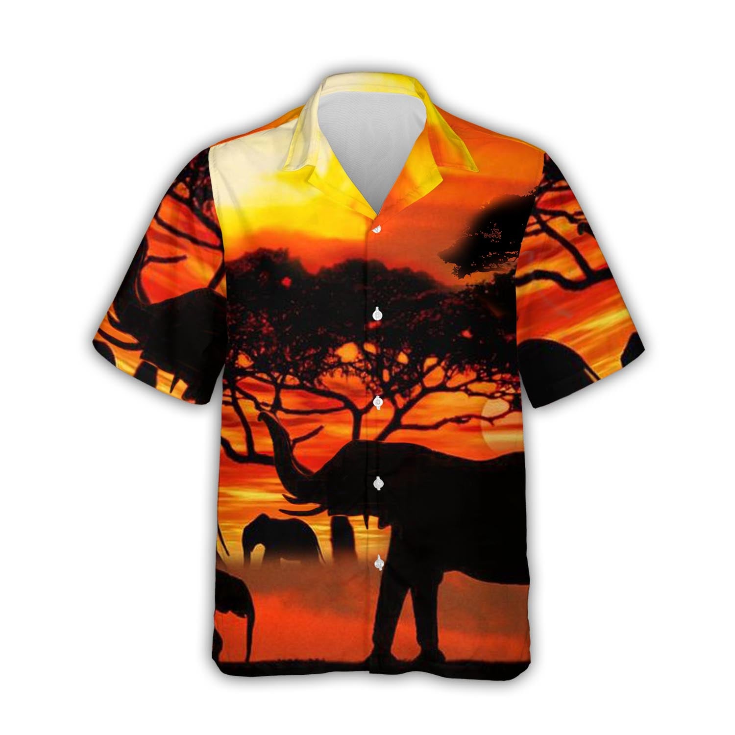 Elephant Sunset Tropical Summer Vacation Beach Hawaiian Shirt, Elephant Button Down Aloha Shirt Gift