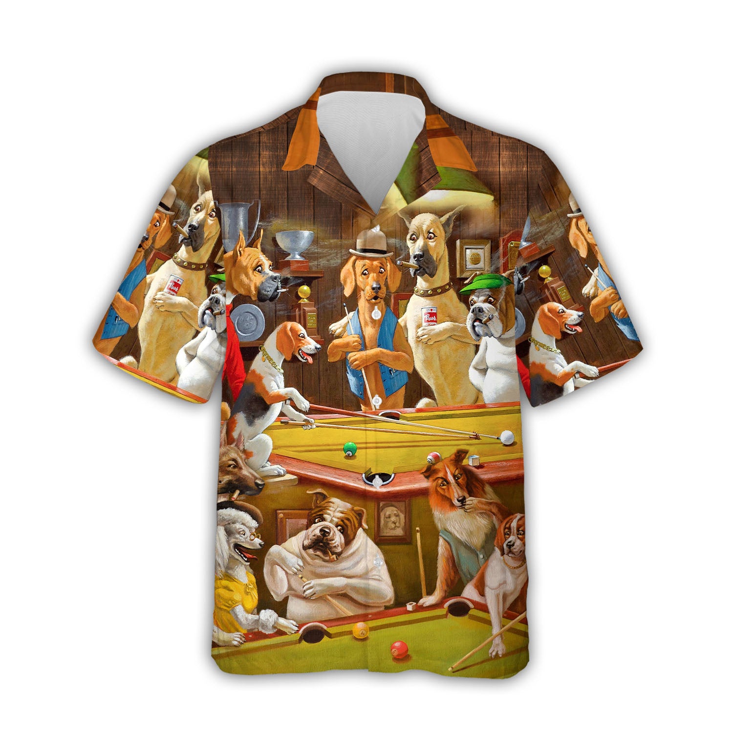 Funny Pool Dogs Spring Summer Beach Hawaiian Shirts, Billiard Lover Puppy Owner Unisex Aloha Shirt Gift