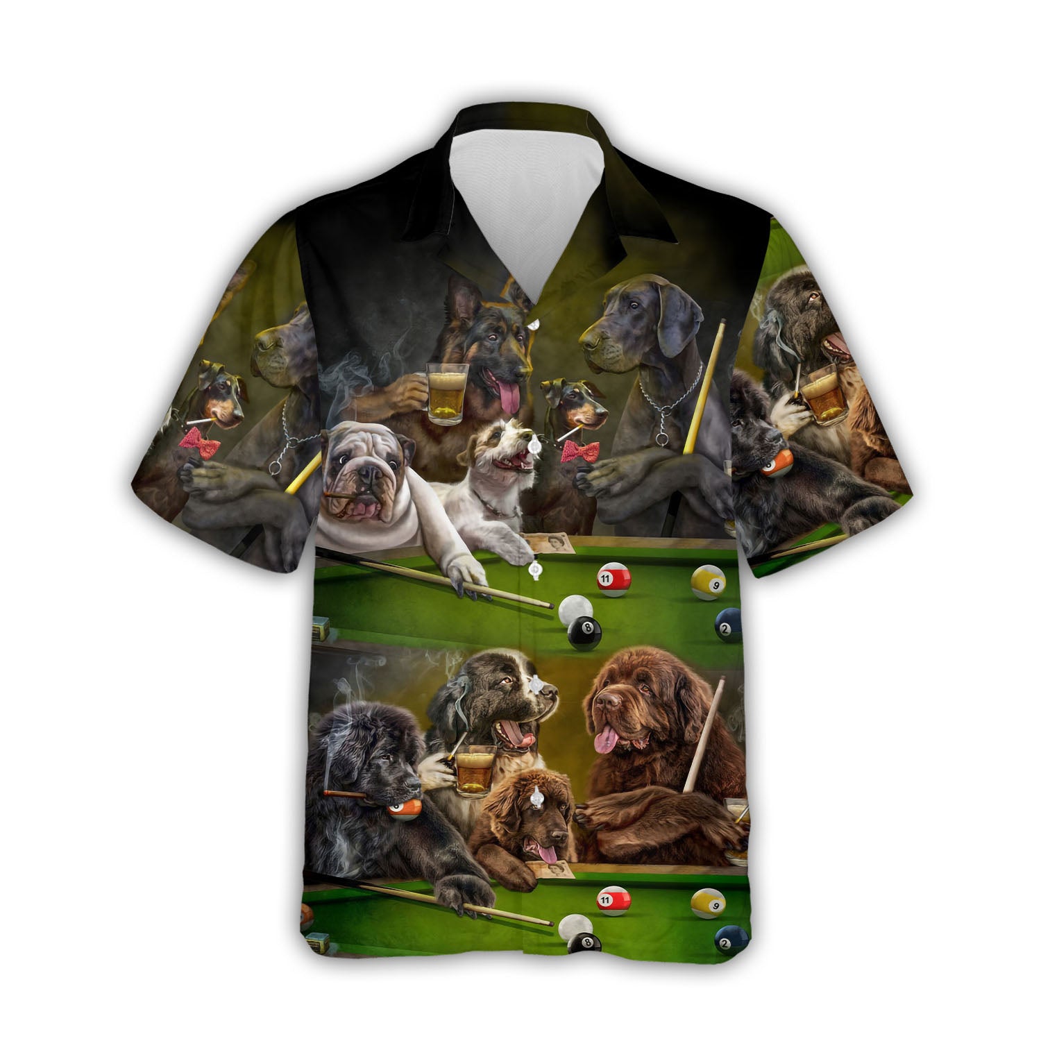 Funny Vintage Pool Dogs Play Billiards Spring Beach Hawaiian Shirts