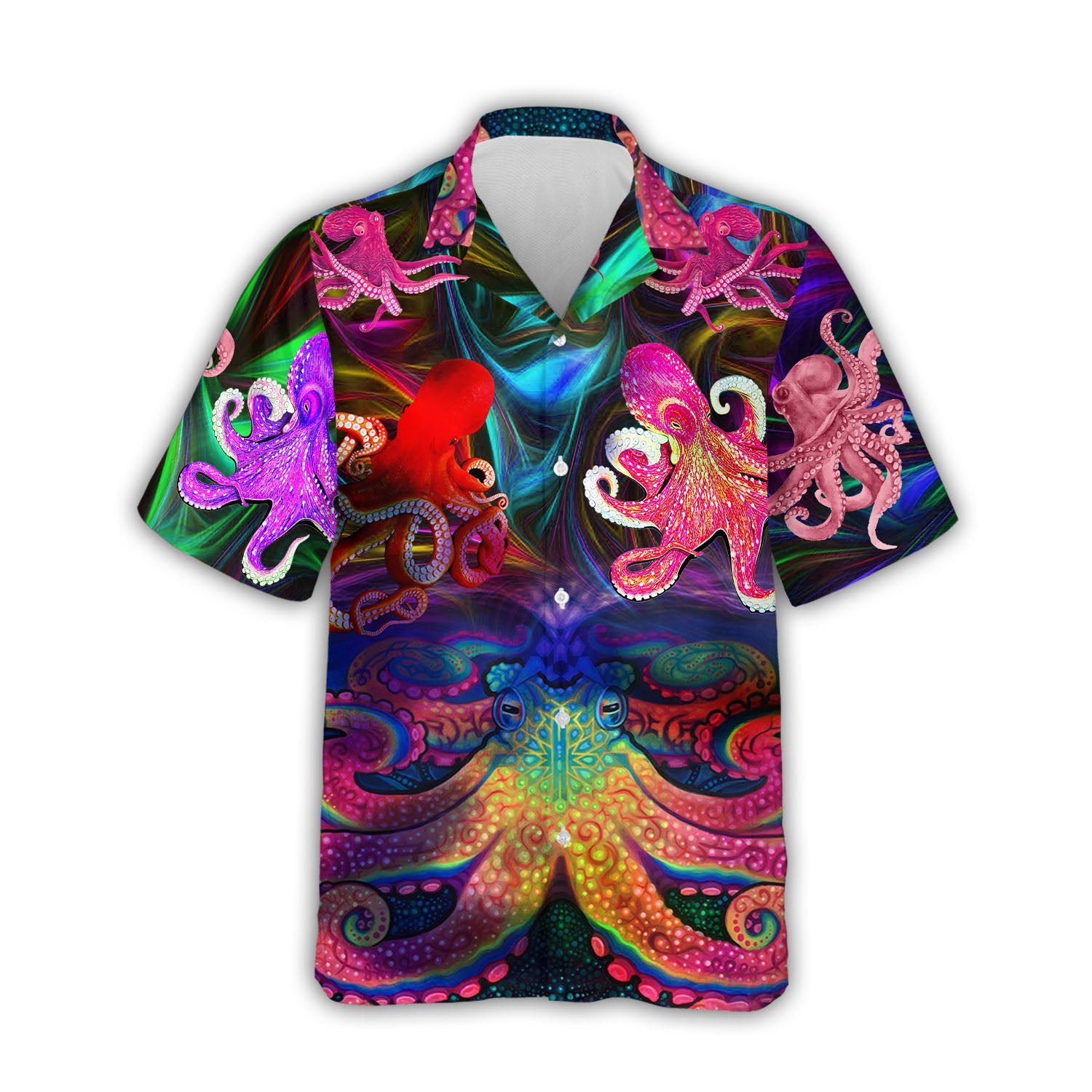 Colorful Octopus Men Hawaiian Shirt, Ocean Life Summer Button Down Shirt