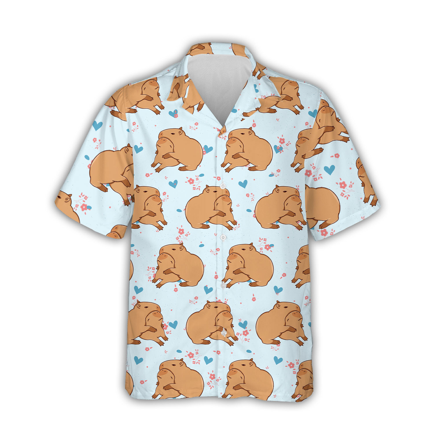 Capybara Printed Hawaiian Shirt Casual Capybara Couple Aloha Summer Beach Button Down Shirts