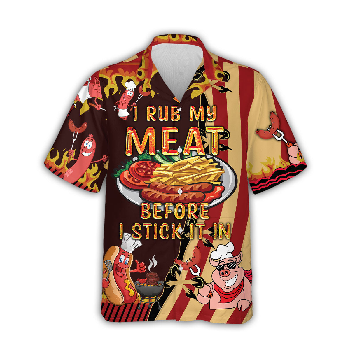 I Rub My Meat Before I Stick It in Hawaii Shirts, Hotdog Lover Aloha Beach Shirt, Fast Food BBQ Unisex Button Down Shirts