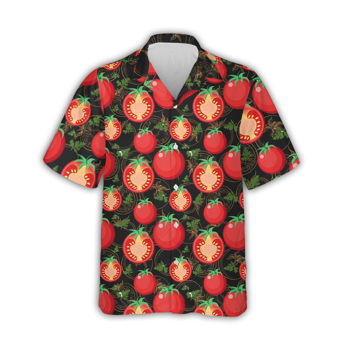 Tropical Tomato Men's Hawaiian Shirts Short Sleeve, Tomatoes Fruit Lover Aloha Beach Shirt, Button Down Shirt
