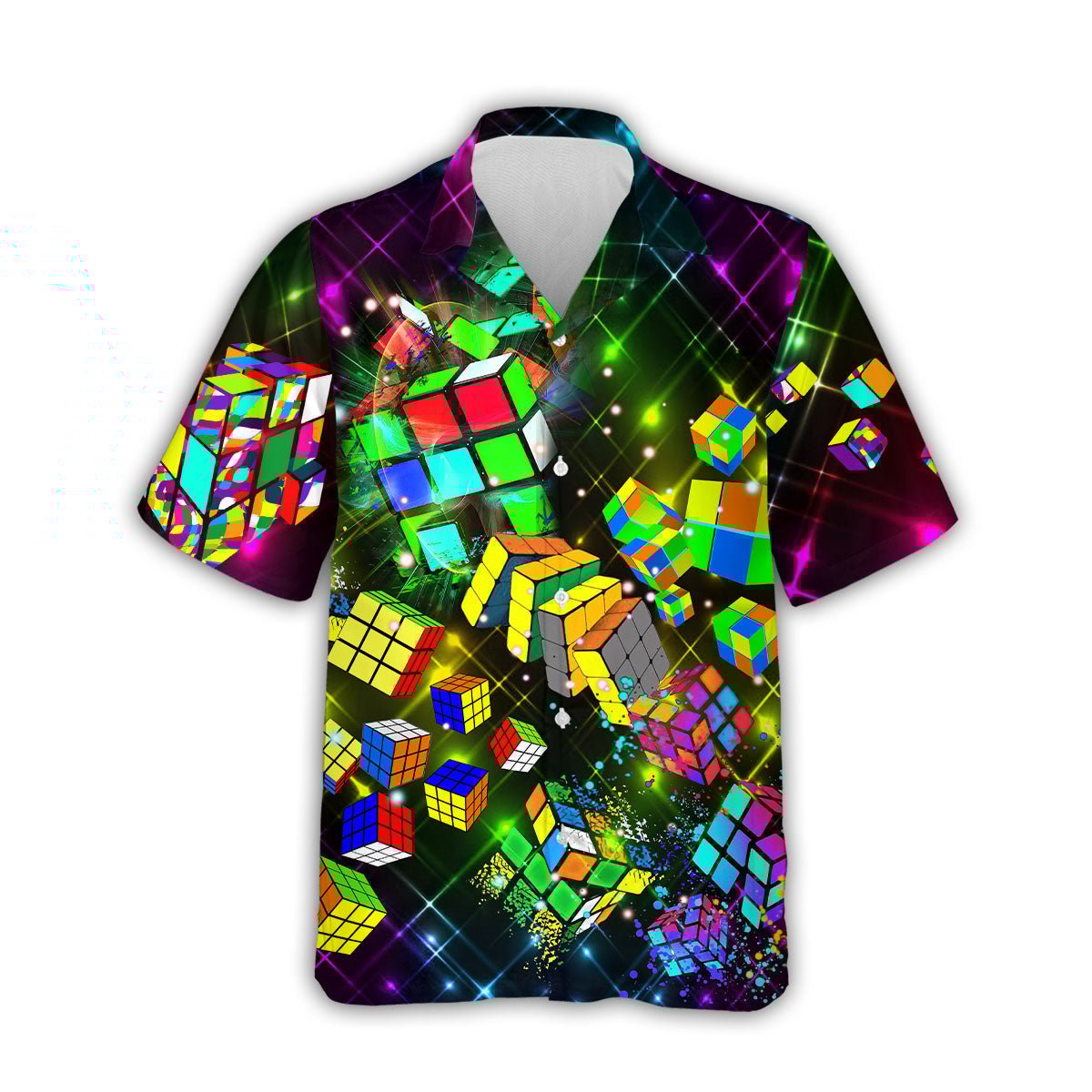 Rubik Pattern Hawaiian Shirt, Board Games Aloha Casual Button Down Soft Beach Unisex Shirts For Rubik Lovers